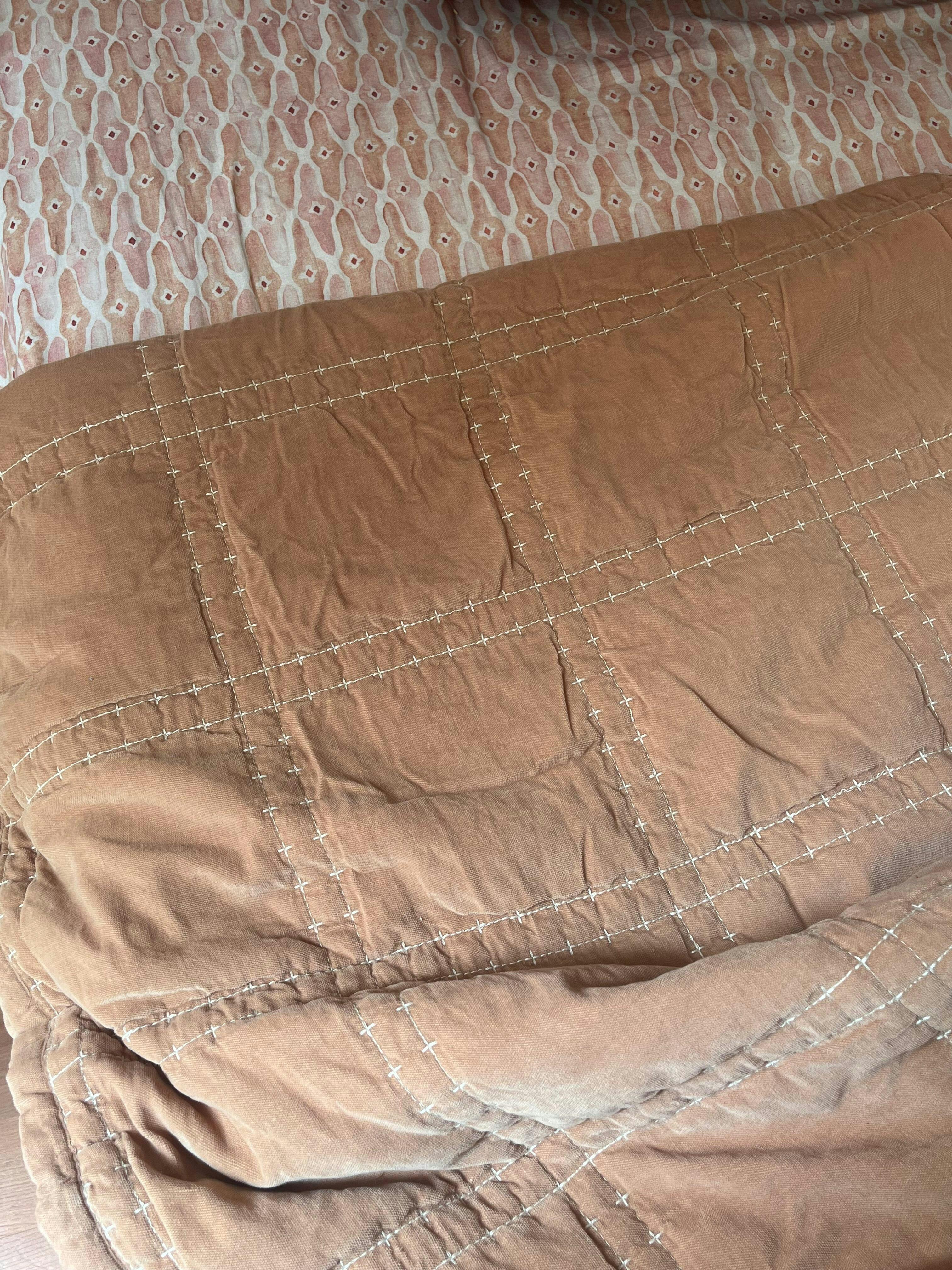 Our Checker Velvet Quilt is designed for those who love simple, textured comfort. Made from cotton microvelvet and quilted with a running embroidered checker pattern, it offers a plush, weighty feel that’s perfect for cooler days.