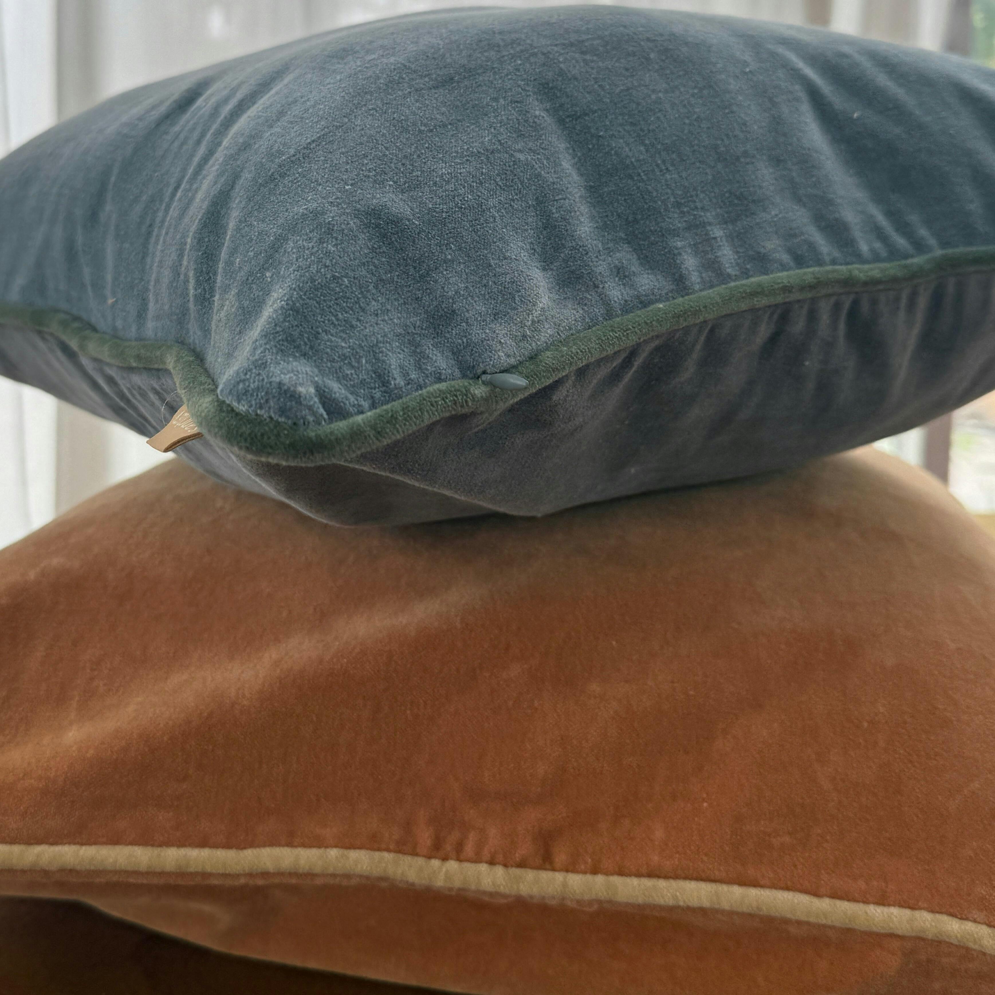 Contrast piping in Eucalyptus and a hidden zipper closure for seamless styling and easy maintenance