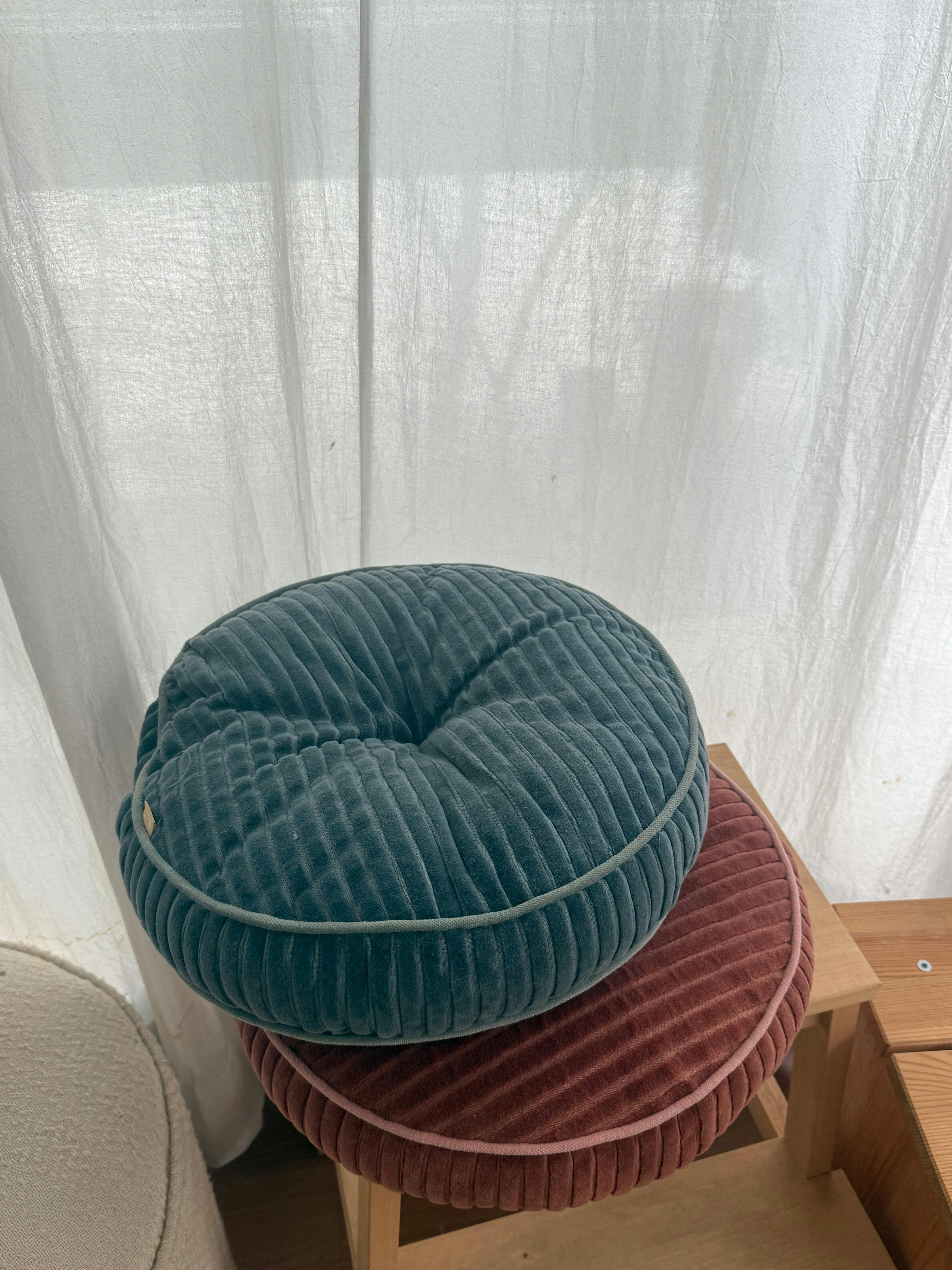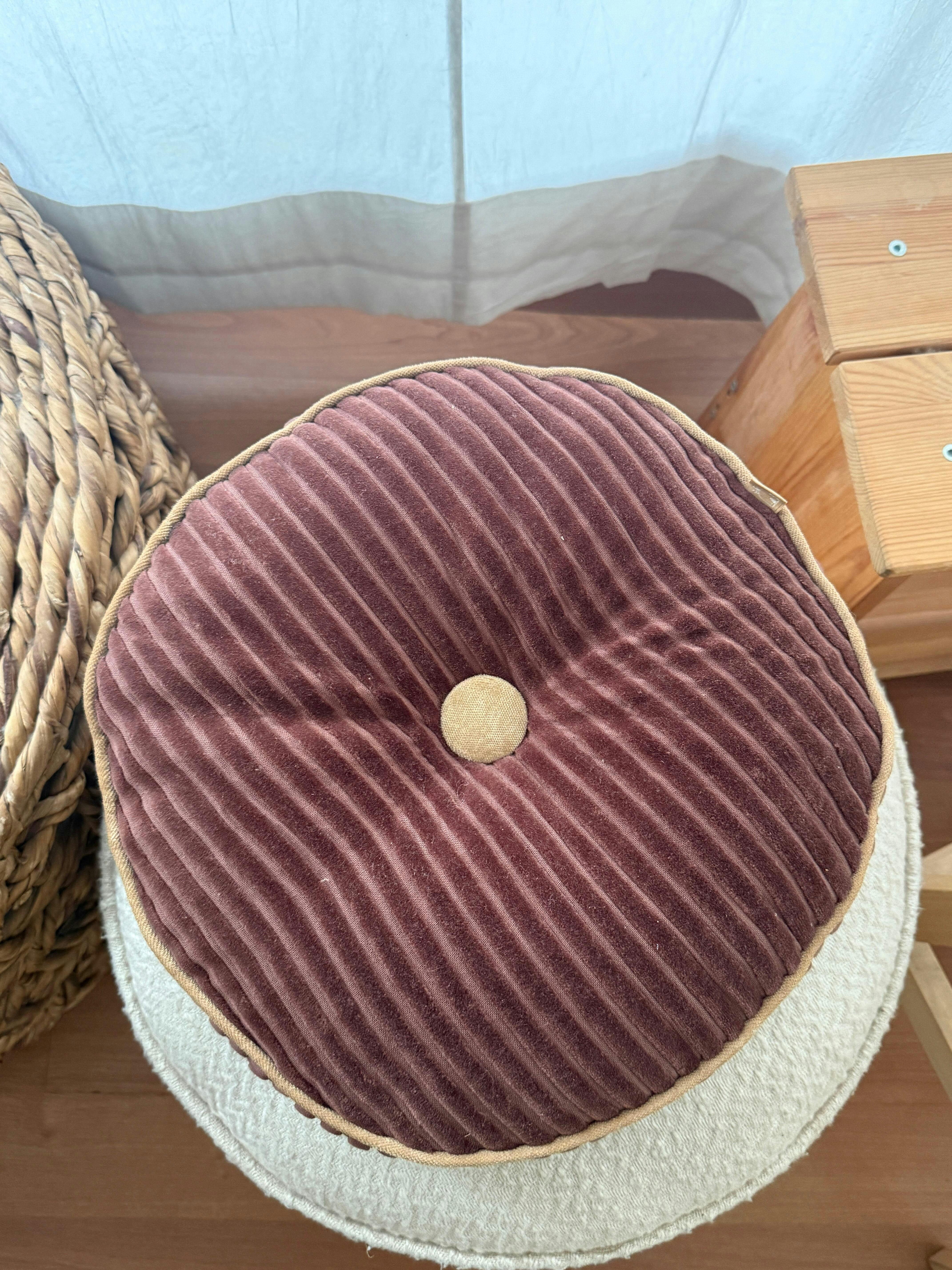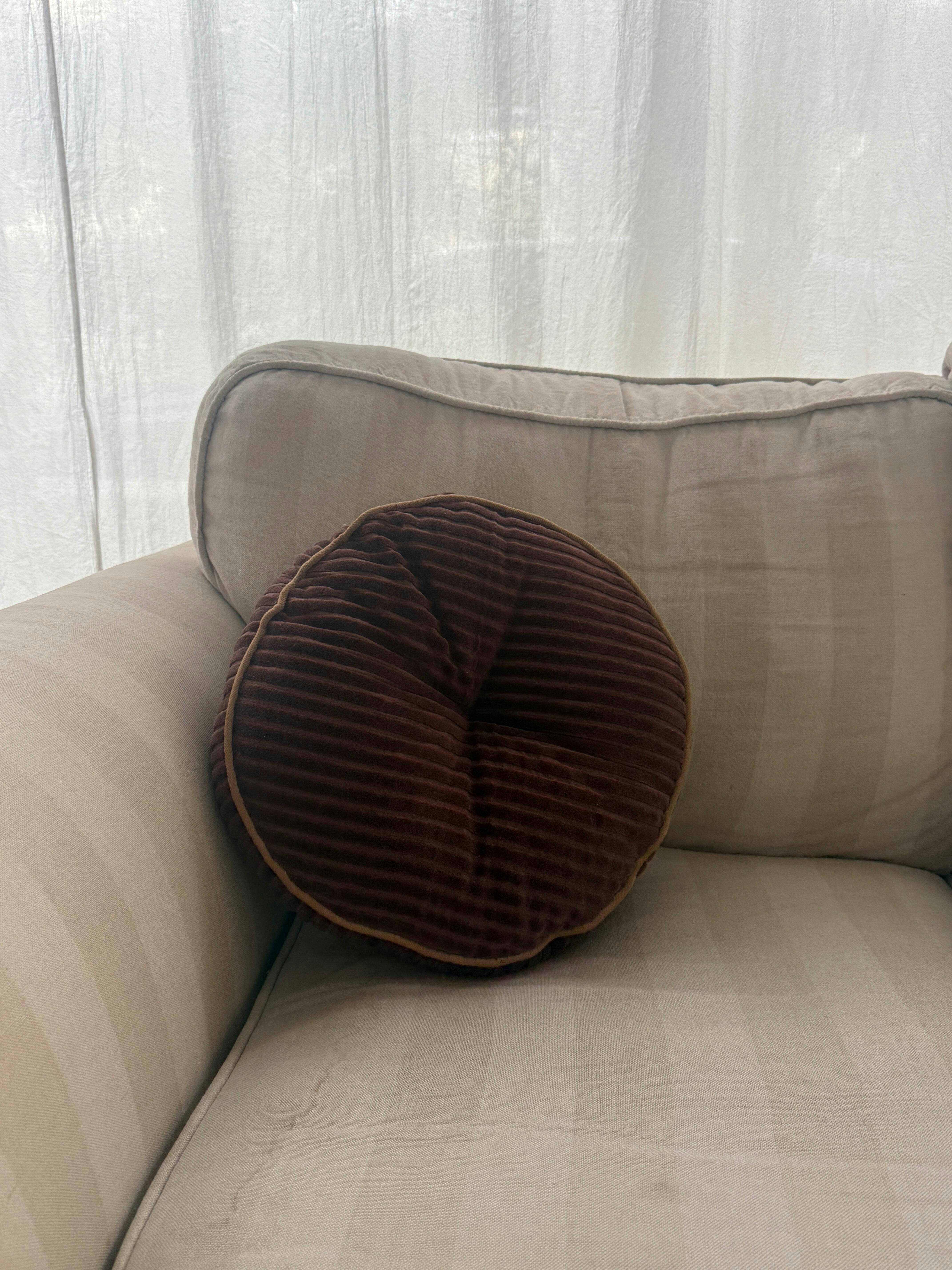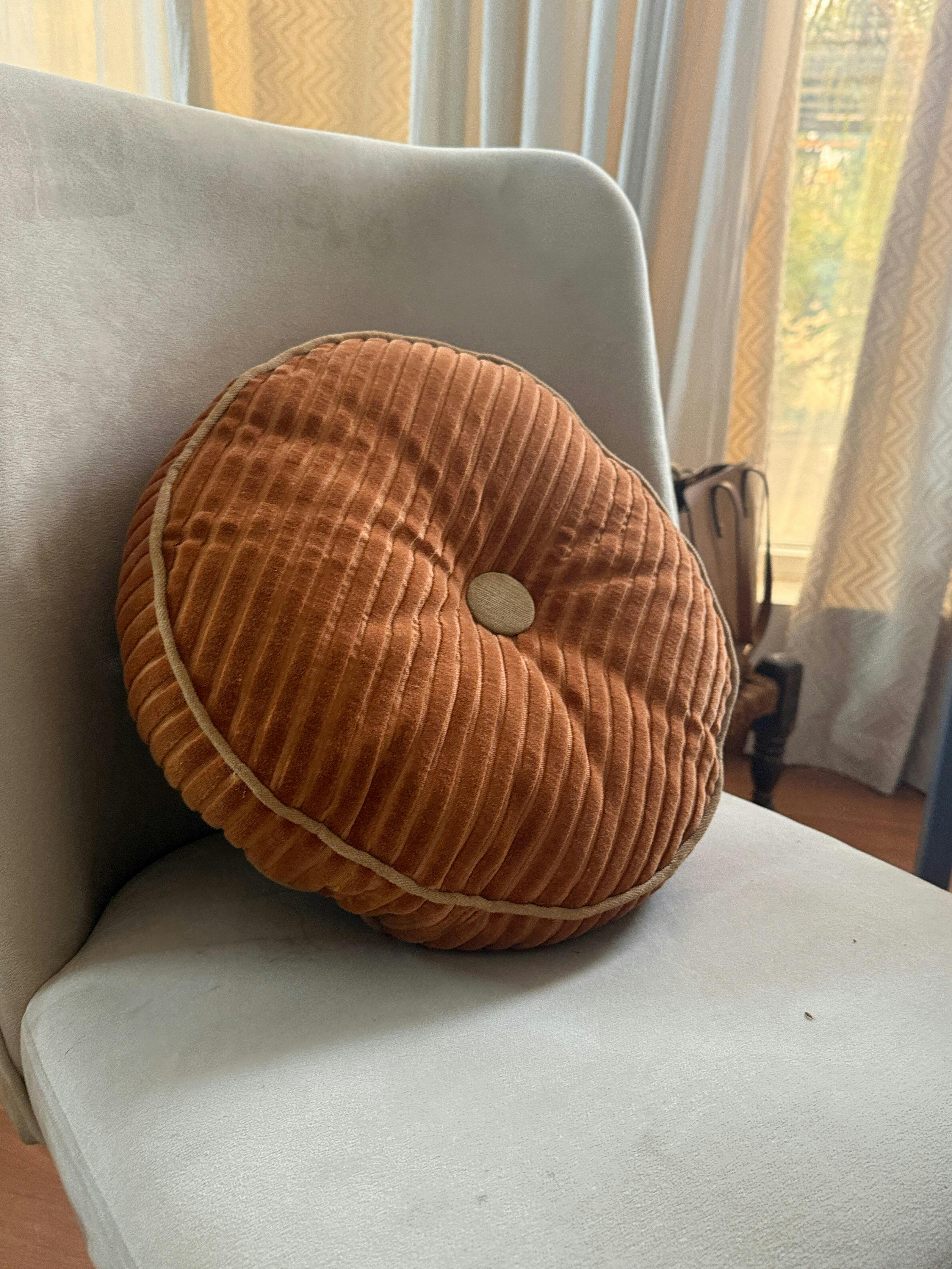 SandstoneOur Luna Cuddle Round Cushion is customer favorite for its ability to bring instant coziness to any setting. Made with ultra-soft velvet featuring a striped texture, it is perfect for all kinds of weather.