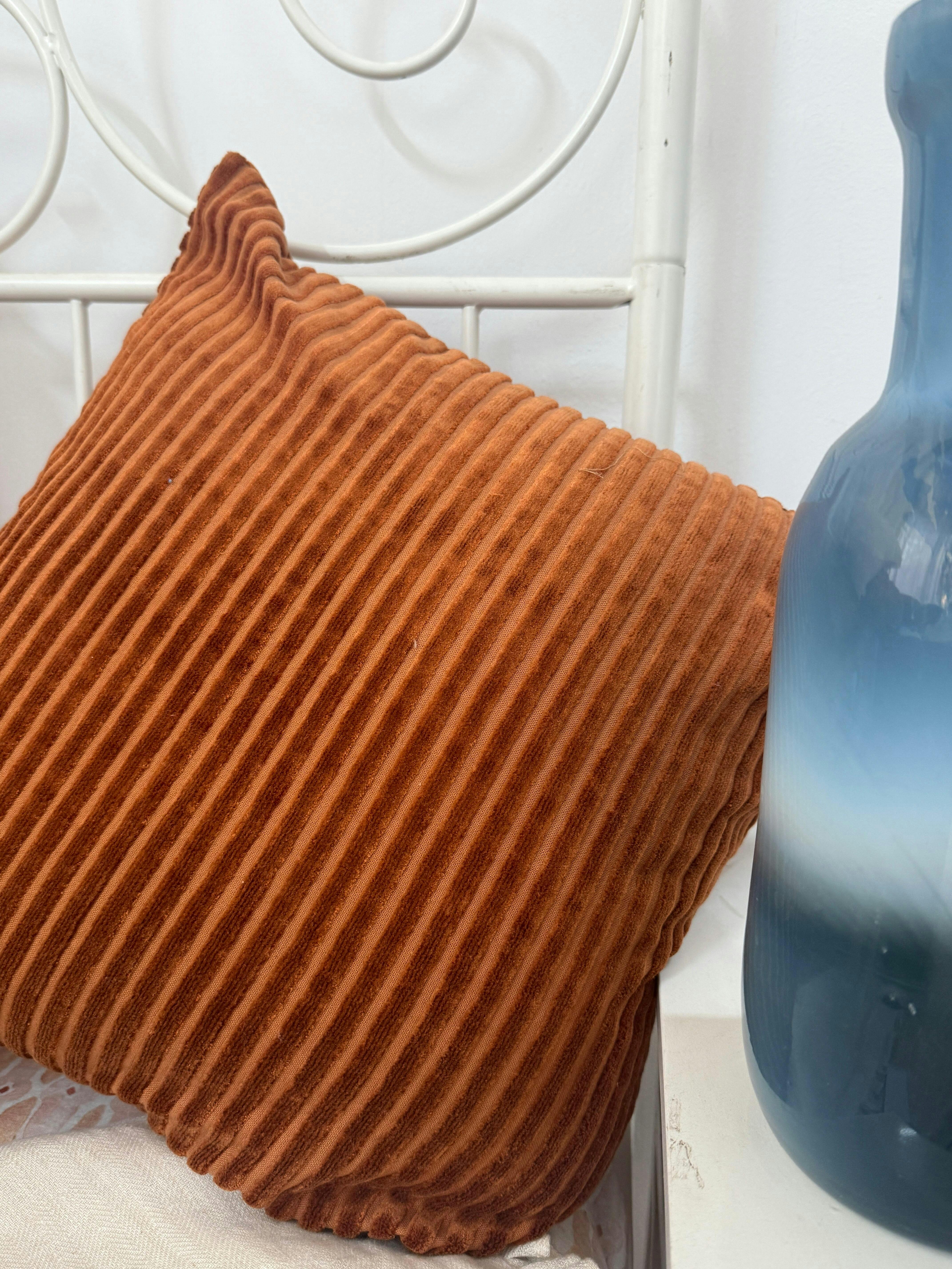 SunsetOur Luna Velvet Cushion Cover is crafted from premium striped-texture velvet that brings together softness, structure, and subtle sheen. The woven stripe effect adds quiet dimension and movement, catching light beautifully from every angle.