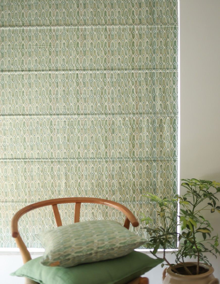 Our Mosaic Fabric features original watercolour artwork by Ramita printed on linen.