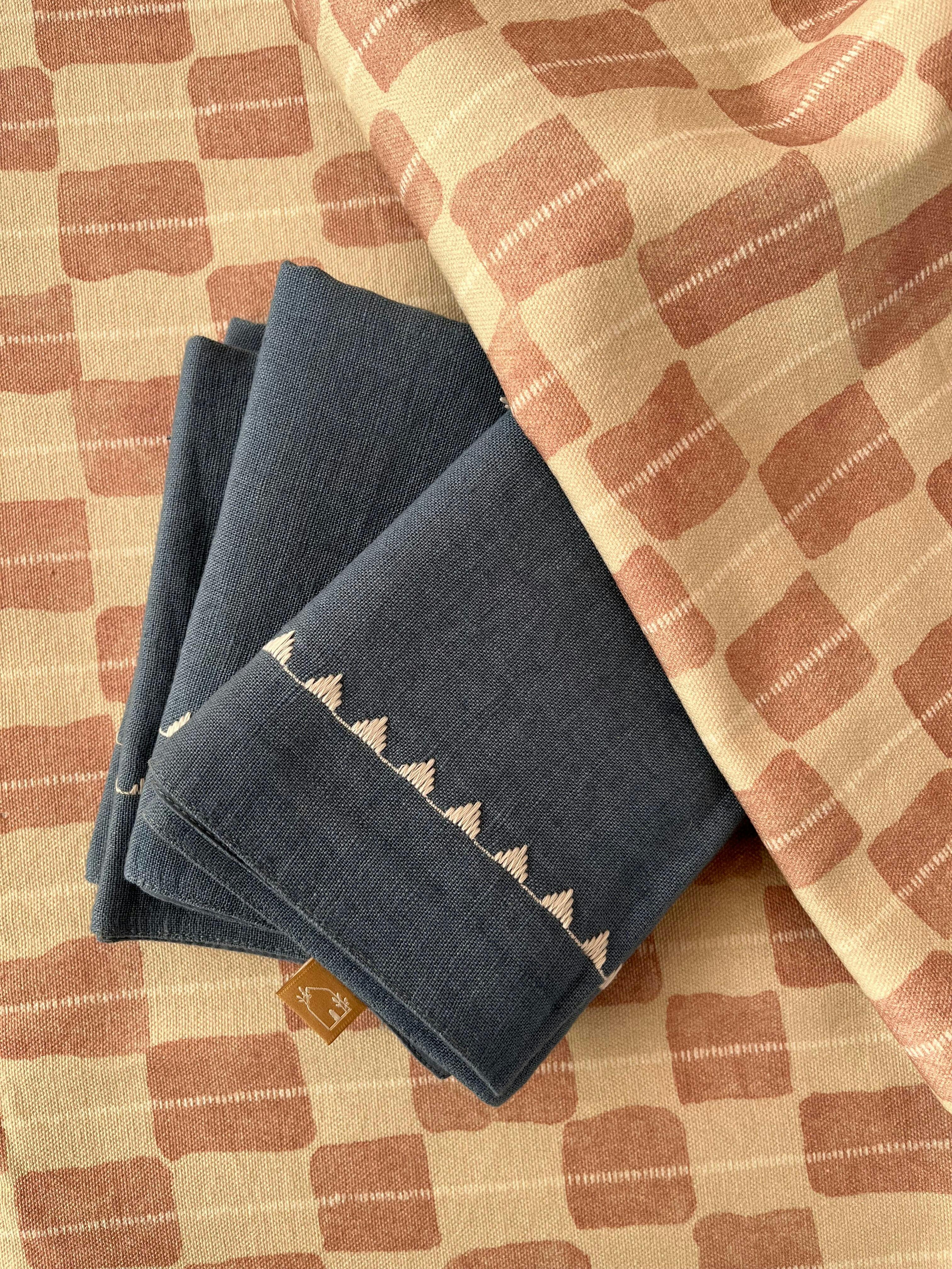 Our Temple Sand Linen Table Mats are made from fine linen in a simple flat weave with intricate embroidery at the borders, an ideal complement to add to any setting.