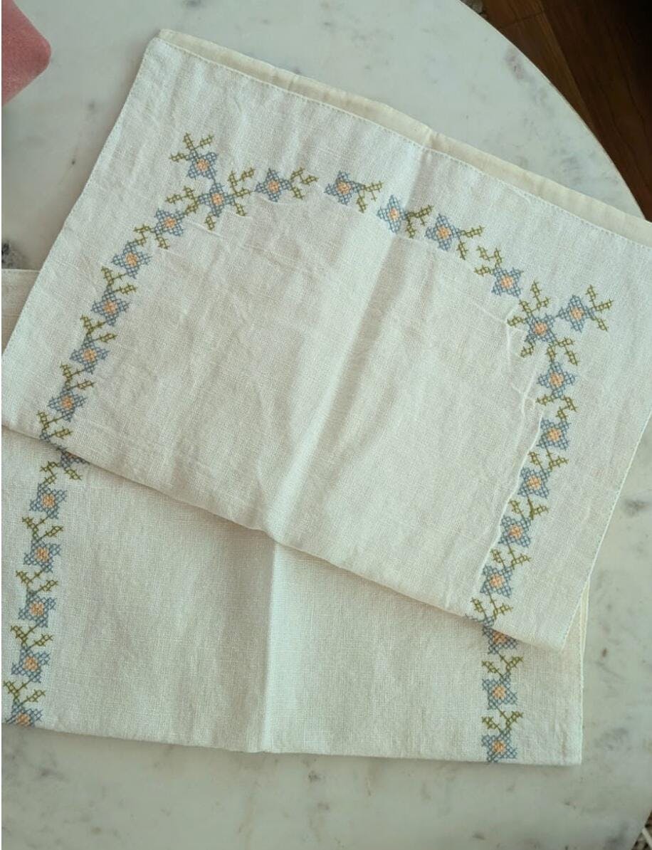 Our Trellis Cross Stitch Table Mats are crafted from pure linen and detailed with a fine floral border embroidered in soft cross-stitch. The design forms a delicate rectangular frame that adds subtle texture and colour to the clean ivory base.