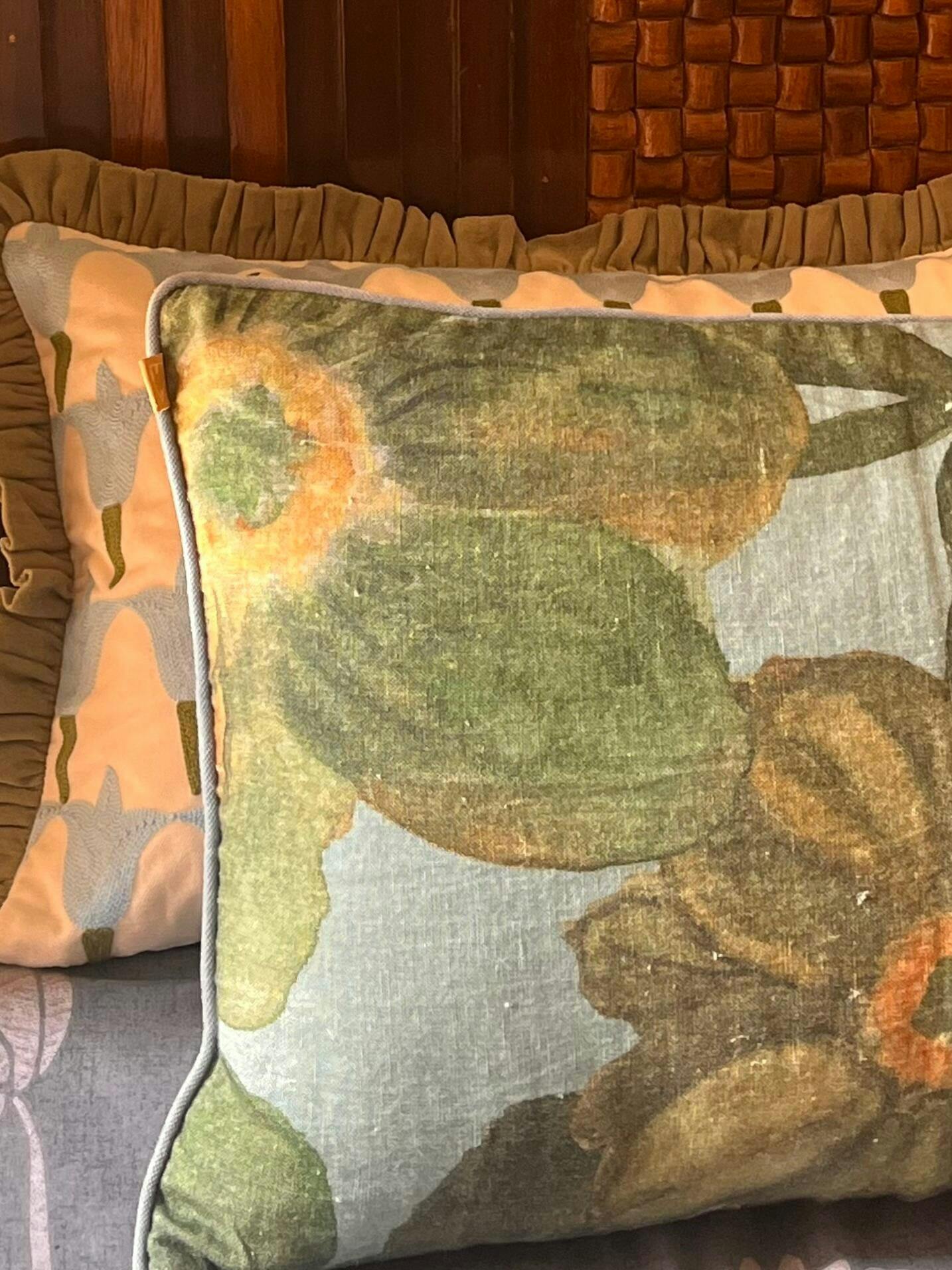 100% Linen front with microvelvet backing and piping